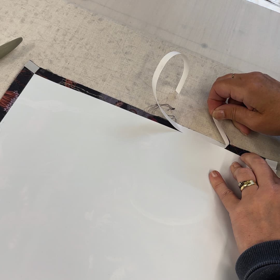 3. Each silk panel is scored along the hems, and the backing from each edge is carefully removed.