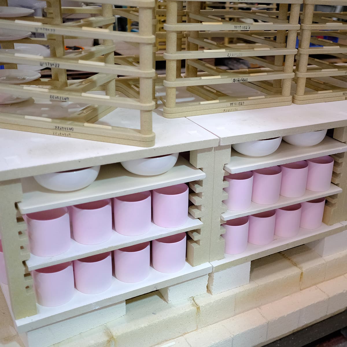 During the glost firing (also known as the glaze firing or second firing) process, the glaze melts on the fired body and forms a vitreous, glass-like surface.