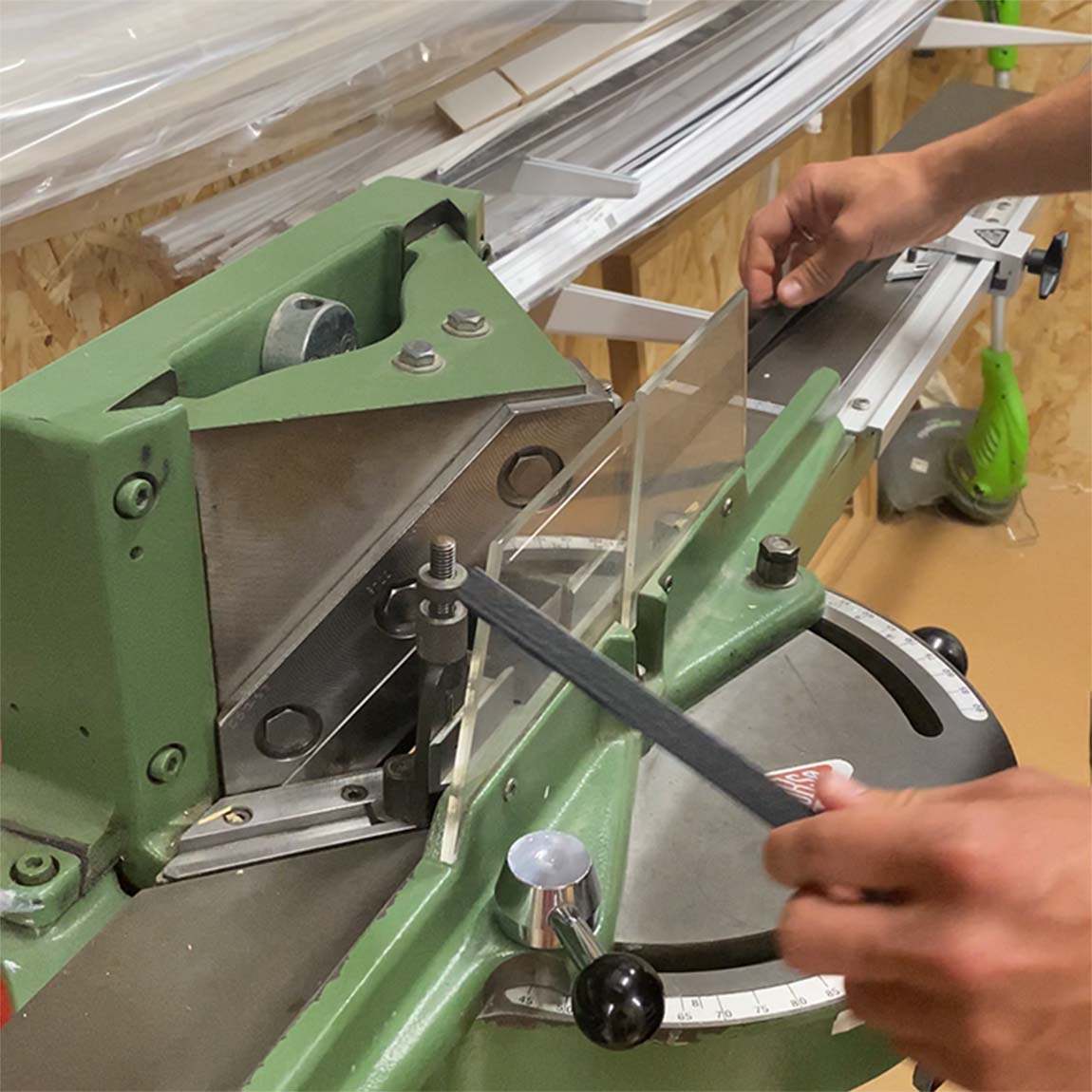 2. The wood for the frame is first cut into pieces of exactly the right size to make the frame - our silk prints measure 66 cm x 66 cm