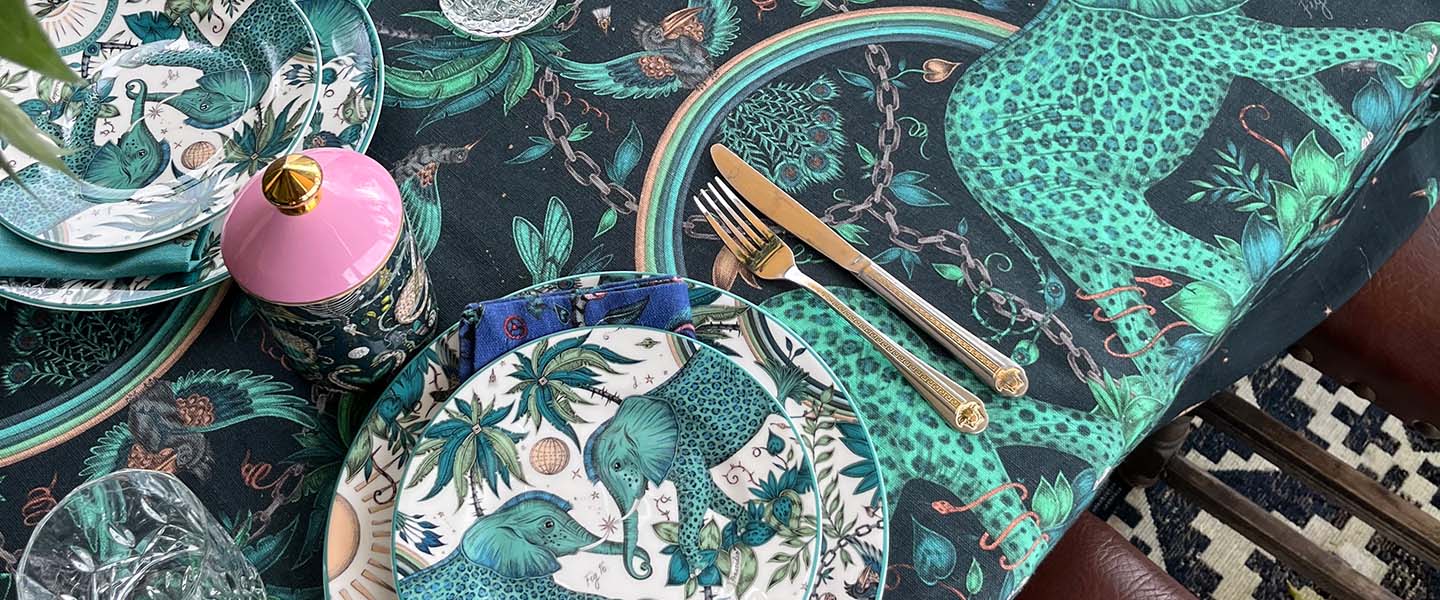 Tablecloths are the forerunners in tablescaping! Think of them as adding an extra layer of sophistication, like adding a fabulous scarf to your outfit! They add elegance and give you the opportunity to really theme the scene according to the occasion, whether it be Easter, Halloween or Christmas! I’ve chosen the Zambezi tablecloth for my table, which I think works well for any occasion.