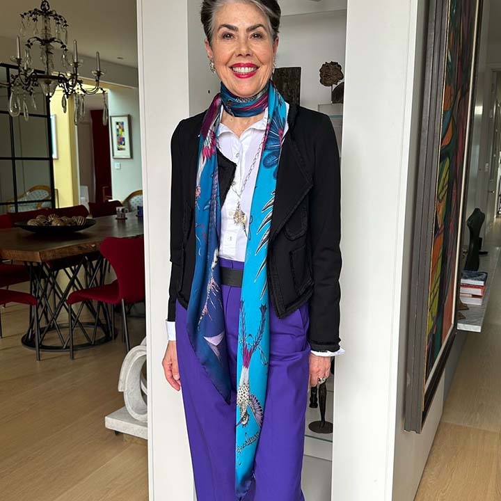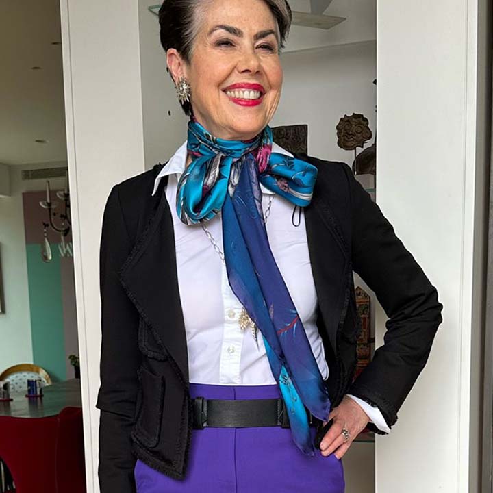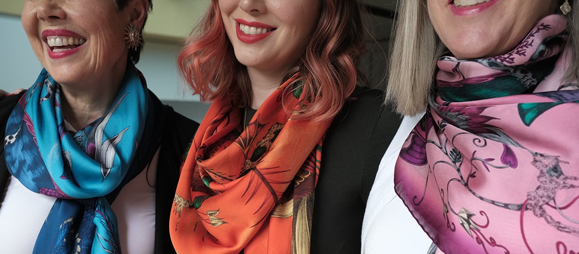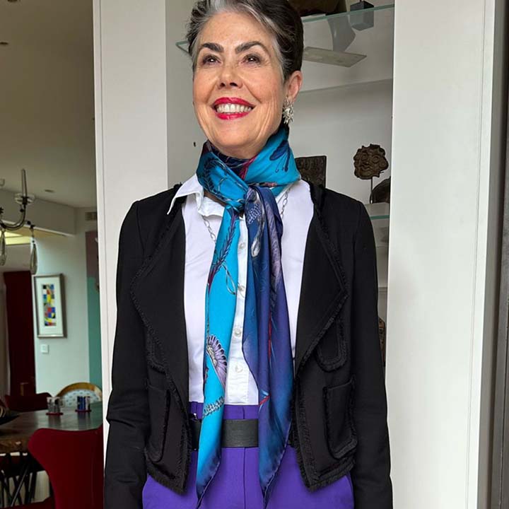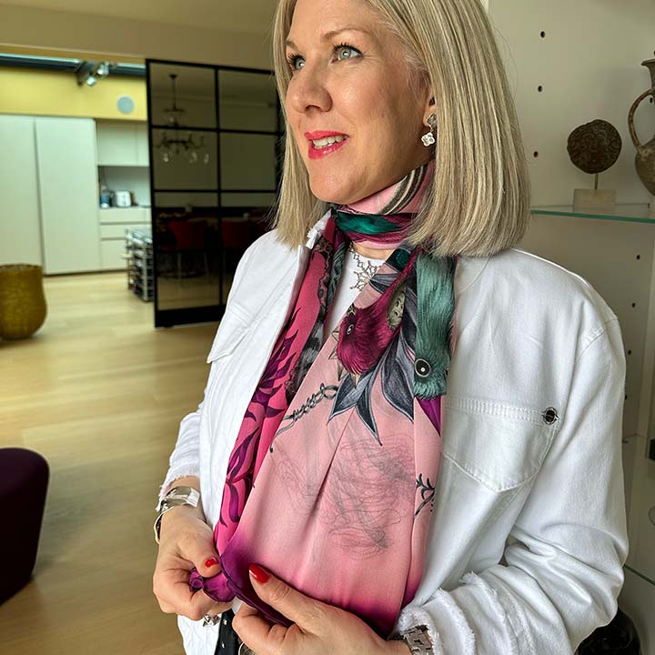 In celebration of our new Quetzal scarf collection, created in collaboration with colour experts Red Leopard, Rachel and Manina graciously showcased their favourite methods for tying the exquisite Silk Chiffon Scarf in their seasonal colour ways Summer and Winter. Keep reading as they teach you five simple yet stunning scarf tying styles, allowing you to effortlessly elevate your fashion repertoire.