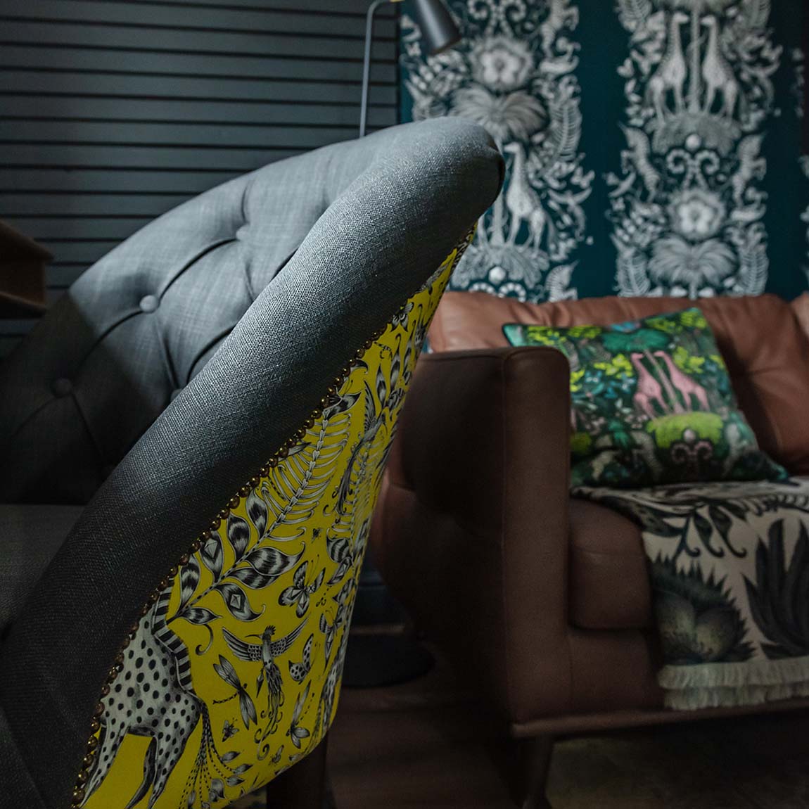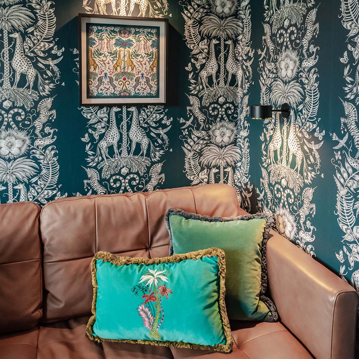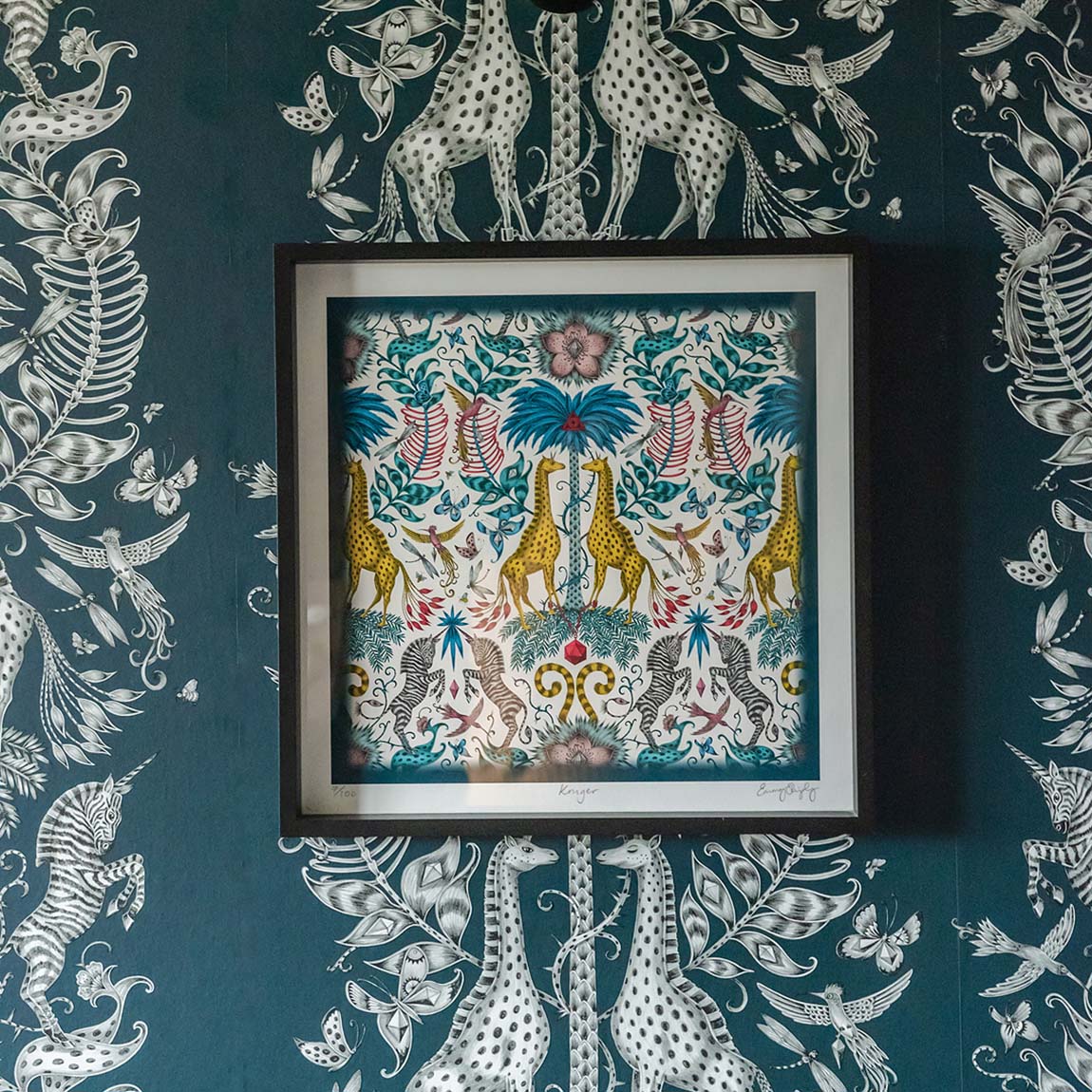It is vital to choose a unifying element. This could be one of the following: theme, colour, style or mood. In my kitchen-cafe area, I put together all my Emma Shipley cushions, Kruger throw and Snow Leopard tray. They are in a variety of colours and designs, the unifying element being Emma's fantastical themes.