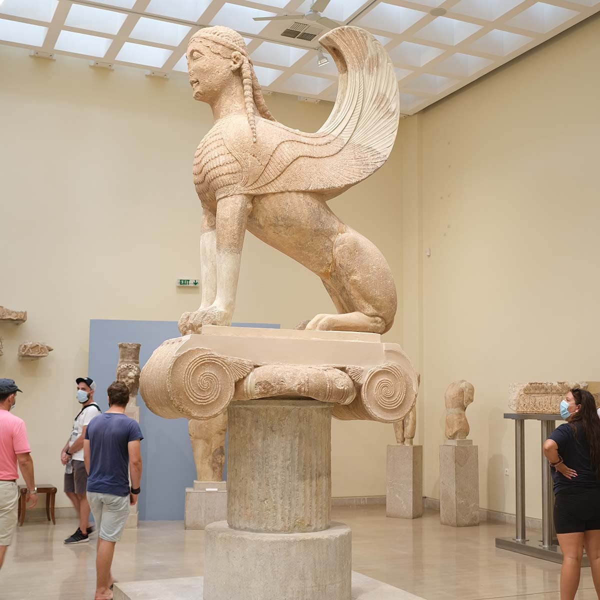 The next day, I spent some time at the Delphi Archaeological Museum, one of the most visited collections of ancient Greek sculpture and art. I saw the marble Sphinx of Naxos, the 6th-century ‘twins of Argos’ and the famous bronze Charioteer, a life-size statue which celebrates victory in the Pythian Games of approx. 475 BC.