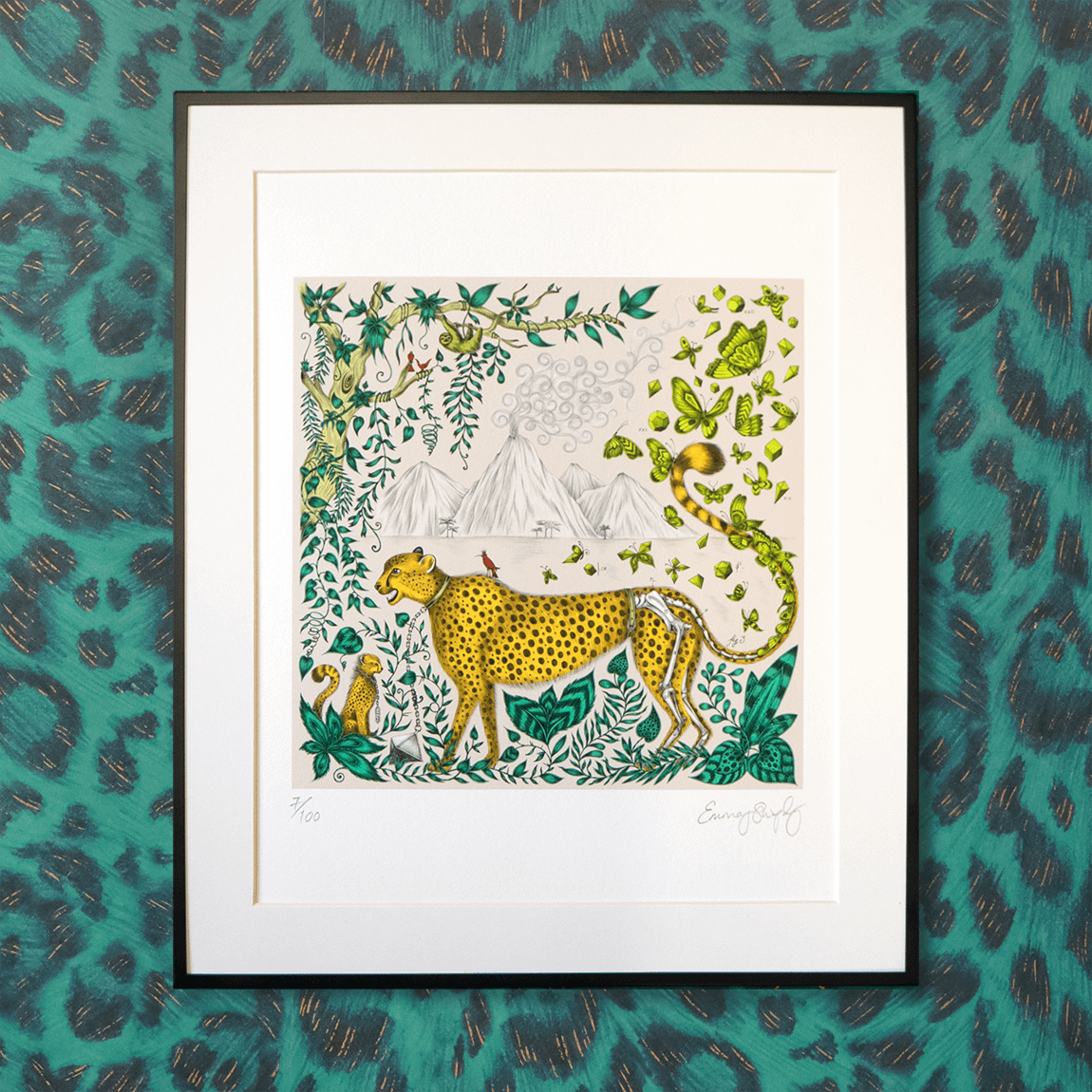 This striking Cheetah Fine Art Print, printed in vibrant colour would make a beautiful gift for any Cheetah lover. The prowling cat, with anatomical detailed and chained collar represents the species vulnerable endangered status and our need to protect them. A tree will be planted for every print sold, in partnership with World Land Trust.