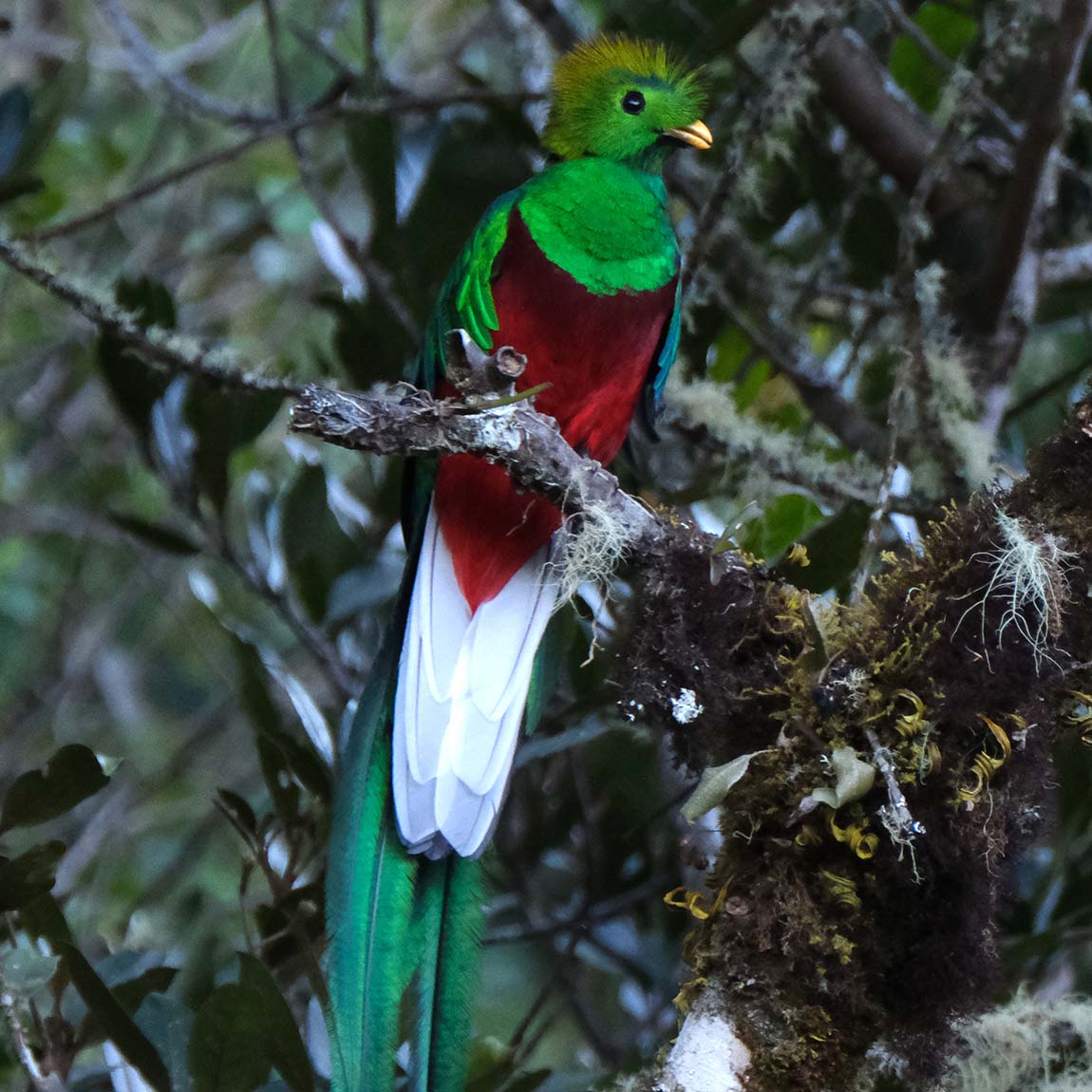 The Resplendent Quetzal can be found in the cloud forests of Central America, which are also home to a wide variety of plant and animal species. Cloud forests are unique ecosystems that are characterised by their high levels of humidity and cloud cover. These forests are found at higher elevations than tropical rainforests and are typically located in mountainous areas where fog and mist are common.