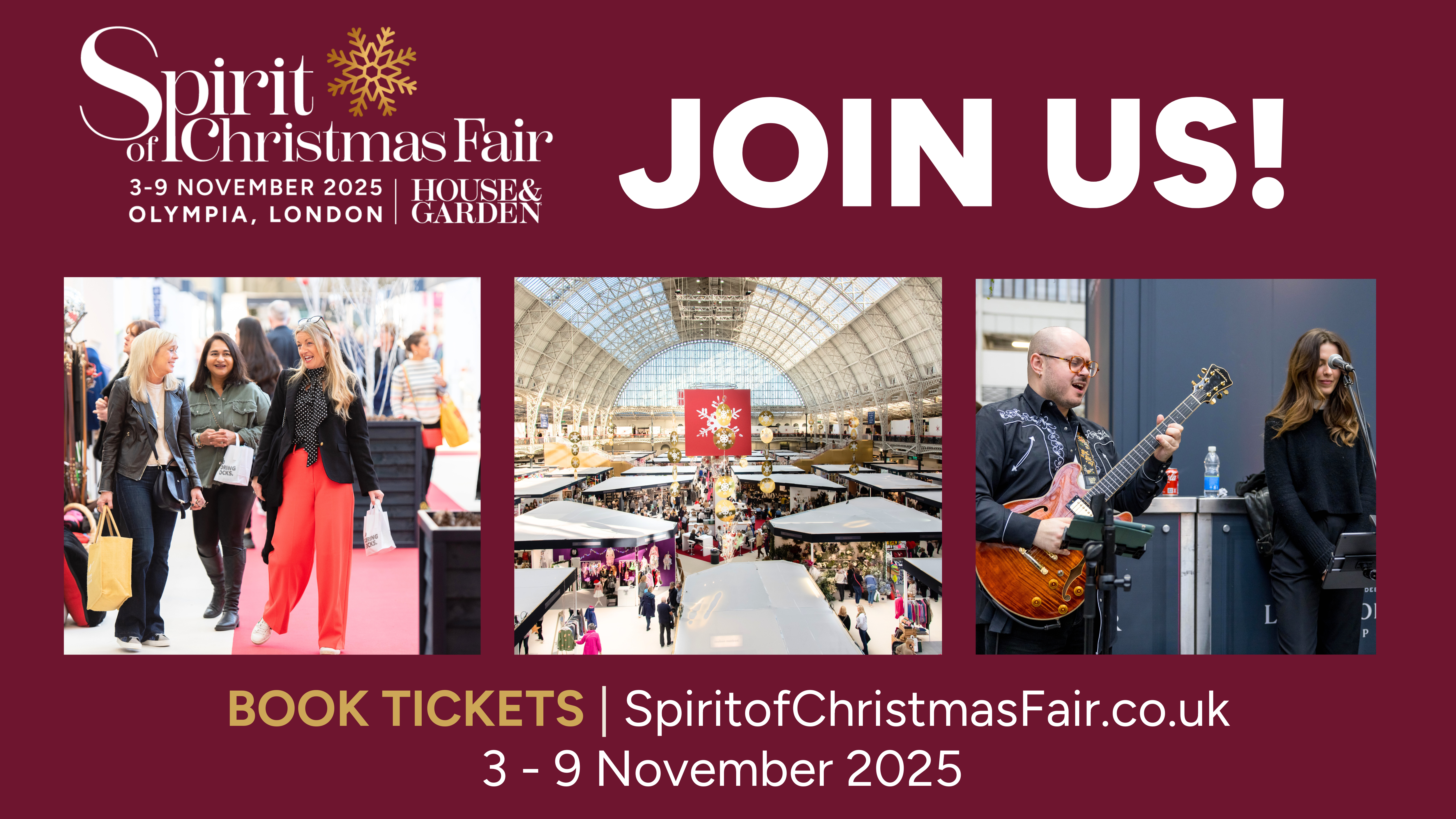We're delighted to be heading back to our favourite festive fair, Spirit of Christmas, again this year, and as a special treat we have up to 30% off tickets for you!