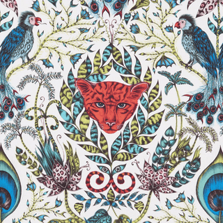 One of Emma's original signature designs, Amazon was inspired by Emma's travels in the South American jungle. The hand-drawn design features a menagerie of surrealist jungle creatures, including parrots and jaguars.