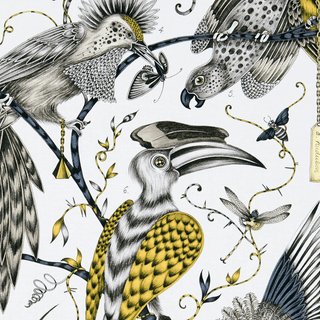 Inspired by 19th Century botanical artist John James Audubon, the hand-drawn design features fantastical birds along with geometric and scientific details. Look out for mechanical bees and birds, as well as metallic tags carried by birds, inscribed with inspirational scientists and naturalists from Audubon to Turing.
