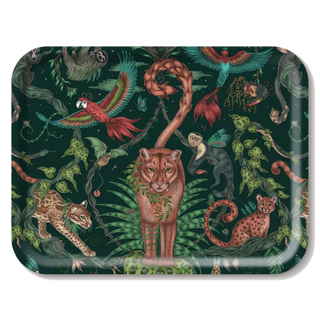 Enter a jungle dreamscape inspired by Emma’s travels in the Osa Peninsula in Costa Rica, one of the most biodiverse places on Earth. An enigmatic puma stands centre-stage, surrounded by other fantastical creatures of the forest, including macaws, monkeys, sloths, ocelots and more. Other influences include Pre-Raphaelite paintings, mid-19th century Arts and Crafts movement textiles, and Edward Lear illustrations.