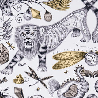 A fierce and fantastical design, Extinct was inspired by ice age creatures and lost species, including dodos and sabre-toothed tigers. Scientific notation and surreal details complete the unique, hand-drawn creation.
