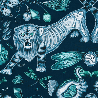 A fierce and fantastical design, Extinct was inspired by ice age creatures and lost species, including dodos and sabre-toothed tigers. Scientific notation and surreal details complete the unique, hand-drawn creation.