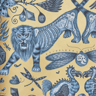 A fierce and fantastical design, Extinct was inspired by ice age creatures and lost species, including dodos and sabre-toothed tigers. Scientific notation and surreal details complete the unique, hand-drawn creation.