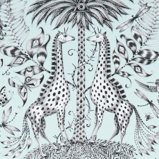 Kruger is one of our most popular signature designs, and features spotted giraffes and curious zebras in a surrealist hand-drawn world. You'll find a whole menagerie of wallpaper, cushions, tableware and more adorned in this African creation, ready to transform your interior into a magical paradise!