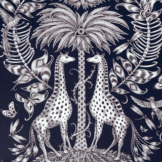Kruger is one of our most popular signature designs, and features spotted giraffes and curious zebras in a surrealist hand-drawn world. You'll find a whole menagerie of wallpaper, cushions, tableware and more adorned in this African creation, ready to transform your interior into a magical paradise!