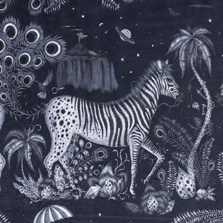 Inspired by Emma's travels in Africa, as well as Jules Verne novels and 1920s silent film 'Lost World', this design features an enchanting scene of discovery. Look out for dinosaurs hiding in the distance...